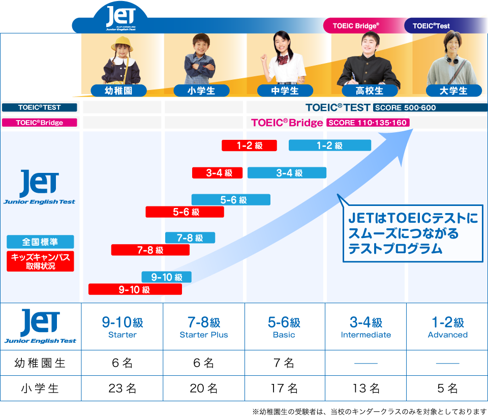 JETとは、TOEIC TEST、TOEIC Bridgeの前段階に位置する、
